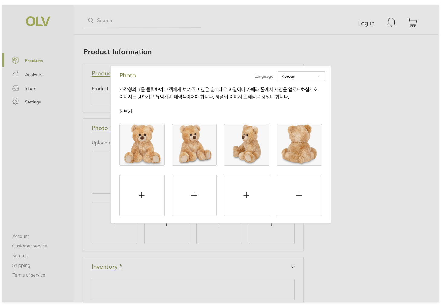 Product upload screen